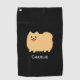 Fluffy Pomeranian Cute Dog with Custom Name Golf Towel