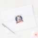 Celebrate Happy New Year with a realistic white fluffy rabbit wearing a tiny party hat, surrounded by colorful confetti and sparkling fireworks. Perfect festive sticker for rabbit love