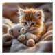 Fluffy red kitten playing with a tiny teddy bear, poster
