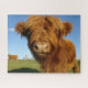 Fluffy Scottish Highland Cow - Blue Sky Jigsaw Puzzle