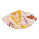 Iridescent paints swirl, creating a fluid masterpiece with golden charm.