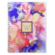 Fluid Art Monogram Red Purple Abstract Notebook. Gorgeous, trending liquid alcohol ink original artwork by Pauline Benjes. Purple monogram on golden square.