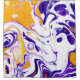 Fluid art texture. Abstract decor with swirling paint effect. Liquid acrylic artwork with flows and splashes. Mixed paints for baner or wallpaper. Purple, white and golden overflowing colours.