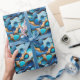 Wrap your gifts in a unique, artistic style with this abstract wrapping paper. The design features flowing, wavy channels in shades of blue and light brown, creating a sense of movement like water or polished wood grain. Interwoven between these waves are smooth, shimmering pebble shapes in a vibrant blue hue. Subtle gold accents add a touch of sophisticated shine. This modern, organic pattern is perfect for the holidays and any occasion requiring an elegant, eye-catching presentation.
