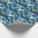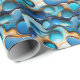 Fluid Blue Waves Pebbles Gold Accent Abstract Wrapping Paper