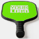 Branded pickleball paddle in a vibrant fluorescent green. In the centre is a large cover logo. Personalise this item immediately. Alma Wad's design is stylish and modern.