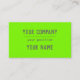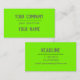 Business card in fluorescent green solid colour background and bold lettering .Simple and trendy design by Alma Wad .Personalise both sides now .It comes 100 in a pack .