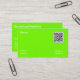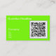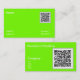 Business card in fluorescent green solid colour background and grey fonts . Simple and trendy design by Alma Wad .It has QR code on both sides . Personalise it with your own codes and business details .It comes 100 in a pack .