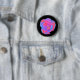 This pretty button features a beautiful photograph of a tulip. The photograph has been artificially coloured resulting in a fluorescent tulip. The outer petals are coloured with shades of blue and red, while the inner petals show shades of pink and purple. The very centre of the flower is bright yellow. The simple black background shows off the stunning beauty of this flower.