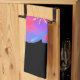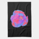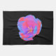 This awesome kitchen towel features a beautiful photograph of a tulip. The photograph has been artificially coloured resulting in a fluorescent tulip. The outer petals are coloured with shades of blue and red, while the inner petals show shades of pink and purple. The very centre of the flower is bright yellow. The simple black background shows off the stunning beauty of this flower.