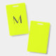 Badge with a vibrant shade of yellow called "fluorescent yellow" . It features a solid-colour background and a dark grey font. Sleek design by Alma Wad Personalise it with your monogram now. You can add more details like name /logo /position etc.