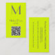 Vertical business card with a solid fluorescent yellow (#DFFF00) background and a bold monogram.Personalise both sides right now. Alma Wad's design is modern and stylish.It comes in a pack of 100.