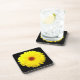 This awesome cork coaster features .a photo of a pretty fluorescent yellow marigold flower on a black background.