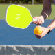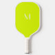 Pickleball Paddle with fluorescent yellow solid colour background and grey font .Simple and trendy design by Alma Wad .Personalise it with your monogram now ..Printed both sides .