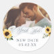 Flush That! Sometimes you just have to roll with it. Our beautiful elegant covid themed save the new date sticker is perfect to announce your new wedding date. Our design features our hand-painted watercolor elegant toilet paper roll banner with an arrangement of beautiful sunny sunflowers & greenery. "Flush That!" is designed with beautiful elegant calligraphy. Customise with your special photo and new date. Artwork created by Moodthology Papery