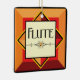 Flute text with a decorative line sporting a music note in a colourful block of warm colours is a unique gift design for woodwind musicians, music teachers and students in concert and marching band.