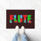 Flute text in colourful blocks surrounded by a hatch pattern is a unique gift design for woodwind musicians, music teachers and students in concert and marching band.