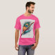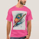 I give wanted to give this a 4 instead of a 5 because these Basic DARK T0shirts run unexpectedly SLIM or Narrow. Which is great if you do not have a potbelly, but I have a paunch. It isn't the shirt's fault that I've got a beer belly. The design and shirt itself is a quality cotton shirt. The color is more of a deep purple, but still a very pretty color. The Basic DARK T-shirts run a bit SLIMMER than the Basic Ts. The neck is a fraction narrower (or seems to be narrower) also. I'm a paunchy middle-aged woman and my neck is 12 inches (31cm) thick and the neckline fell about the same as in the photo of the man, and I had the desire to tug it a bit. So if you're a thick necked man or like loose shirts, be aware these are slimmer shirts. Once I get rid of my lockdown paunch it'll look great. The shirt washed well in cold water with no apparent bleeding. We don't have a dryer, so it hung dry. Did not shrink. Love the colors and the design. The design looks smaller on my shirt than it does on the model on-line. But still, it looks good on the shirt. The printing looks as it does on the model, just the size seems fractionally smaller. Washed garment in cold water, hung dry and design appeared unaffected.