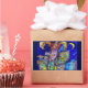 Colourful ,whimsical and vibrant watercolor painting in bright red,blue,green,gold yellow,pink,fuchsia colours inspired from Carnival of Venice and Commedia dell'Arte. An expressive flute player in the night , moon light and a blue cat.This cool and artistic design is also a beautiful gift for special occasions ,birthdays ,weddings,christmas, holiday,mardi gras ,carnival season.