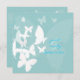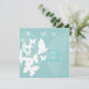The butterflies, fluttering by, in white silhouettes on gorgeous blue background and faded ornamental leaves embellished with swirls and curls in cream on blue. For fanciful occasion.. wedding, anniversary, open house, invitation for an auction!! For more colours >>
