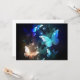 Fabulous, glowing, blue and yellow, night butterfly on dark background.