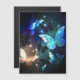 Fabulous, glowing, blue and yellow, night butterfly on dark background.