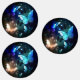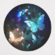 Fabulous, glowing, blue and yellow, night butterfly on dark background.