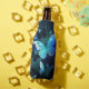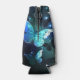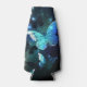 Fabulous, glowing, blue and yellow, night butterfly on dark background.