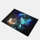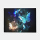 Fabulous, glowing, blue and yellow, night butterfly on dark background.