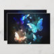 Fabulous, glowing, blue and yellow, night butterfly on dark background.