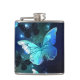 Fabulous, glowing, blue and yellow, night butterfly on dark background.