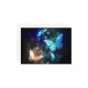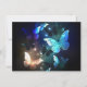Fabulous, glowing, blue and yellow, night butterfly on dark background.