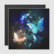 Fabulous, glowing, blue and yellow, night butterfly on dark background.