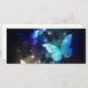 Fabulous, glowing, blue and yellow, night butterfly on dark background.