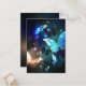 Fabulous, glowing, blue and yellow, night butterfly on dark background.