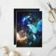 Fabulous, glowing, blue and yellow, night butterfly on dark background.