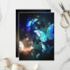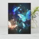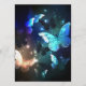 Fabulous, glowing, blue and yellow, night butterfly on dark background.