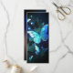 Fabulous, glowing, blue and yellow, night butterfly on dark background.