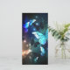Fabulous, glowing, blue and yellow, night butterfly on dark background.