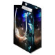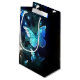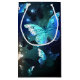 Fabulous, glowing, blue and yellow, night butterfly on dark background.