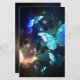 Fabulous, glowing, blue and yellow, night butterfly on dark background.