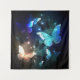 Fabulous, glowing, blue and yellow, night butterfly on dark background.
