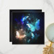 Fabulous, glowing, blue and yellow, night butterfly on dark background.
