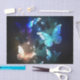 Fabulous, glowing, blue and yellow, night butterfly on dark background.