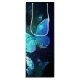 Fabulous, glowing, blue and yellow, night butterfly on dark background.