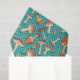 Red and white spotted fly agaric mushrooms tumble across a background of polka dotted turquoise. Get spots in front of your eyes!