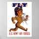This vintage World War Two poster features a cartoon aviator, his pilots wings glowing. It declares, "FLY, Army Air Forces". Celebrate American and WW2 History with this digitally restored vintage war poster product from The War Is Hell Store.