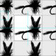 Black silhouette of a fly-fishing dry fly to customise with your own greeting, name, message, etc