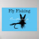 Black silhouette of a fly-fishing dry fly to customise with your own greeting, name, message, etc