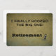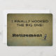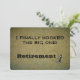 This fun, one-of-a-kind retirement announcement features a fly fisherman with a tight line, on top of a natural brown toned background. The angler appears to be catching the word: 'Retirement!', with the heading: 'I finally hooked the big one!'. The custom invitation also has a template on the back that allows an avid fly fishing angler to invite friends and family to a party celebrating the retirement. All text is a template and is easy to personalise by changing the text, font and/or colour.
